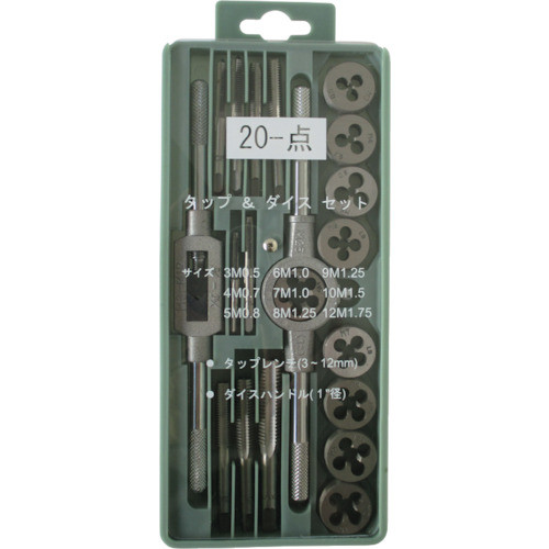●各種ダイス 3×0.5 / 4×0.7 / 5×0.8 / 6×1.0 / 7×1.0 / 8×1.25 / 9×1.25 / 10×1.5 / 12×1.75 (各1)