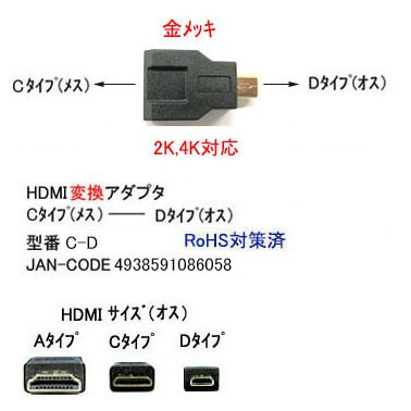 miniHDMI(メス)→microHDMI(オス)変換コネクタ