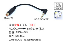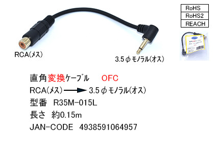 RCA-φ3.5モノラル変換ケーブル L型(メス-オス) 0.15m