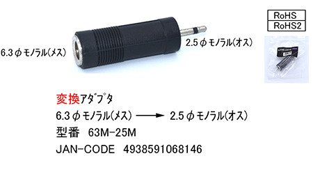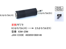 φ6.3モノラル-φ2.5モノラル変換アダプタ(メス-オス)