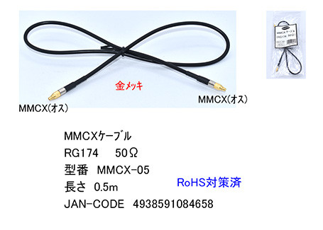 MMCXケーブル(RG174・50Ω) 0.5m