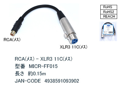 RCA(メス)-XLR3 11C(メス)変換ケーブル 0.15m