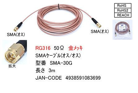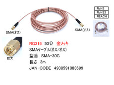 SMAケーブル(RG316・50Ω) 3.0m