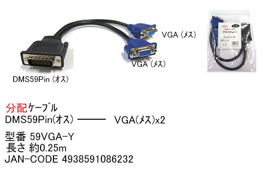 DMS59Pin(オス)-VGA(メス)×2 分配変換ケーブル 約0.25m