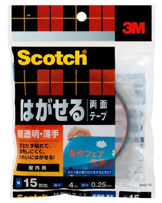 透明アクリルフォーム基材に、アクリル系粘着剤を塗布したはがせる両面テープです。