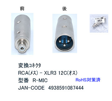 RCA(メス)→MIC(3Pin)XLR3 12C(オス)