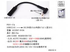PDケーブル(18.5V~20V専用) USB(C)メス→ DC(外径2.5φ 内径0.7φ)L型(オス)0.15m