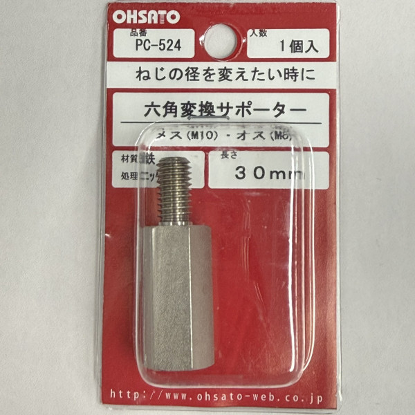 ニッケル 六角変換サポーター メス-オスM10→M8×30