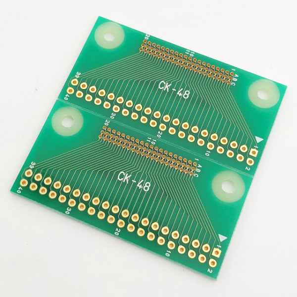 1.27mmピッチのコネクタを2.54mmピッチに変換する基板です。センターのVカットから切り離し、2分割して使用します。1.27×1.27mmピッチのDIL(Dual In Line)、1.27x2.54mm ピッチのDIL、1.27mm ピッチのSIL(Single In Line)コネクタ最大40ピンに対応しています。