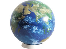 本体の大きさは、子供でも持ちやすい直径15cm。スマホやタブレットをかざすと、いろんな情報がアースボールからとびだします。