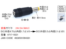 DC 異径変換アダプタ(メス:外径4.75mm内径1.7mm 電圧区分#3-オス:外径5.5mm内径2.1mm)