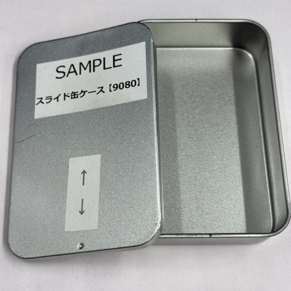 スライドして開閉できるスチール製の缶ケースです。