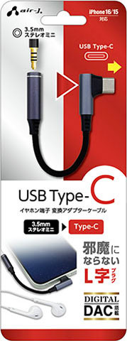 L字型 イヤホン変換アダプターケーブル (3.5 to TYPE-C DAC対応)