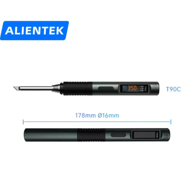 Alientek社のスマートはんだごてシリーズの最新モデルのひとつです。従来のスマートはんだごてT65・T80・T80Pと同じように、優秀な携帯性が一番の特徴です。また、PD/QC規格のUSB電源(Type-C接続)により80~450℃の間で温度調節が可能です。