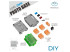 CoreInkマスターコントローラ用のDIY拡張キットです。本製品を取り付けると、下部のPINピンを通じてCoreInkメインコントローラのIOバスをプロトボードに引き出すことができます。回路のデザインと構築に適しています。パッケージにはプロトボードにはんだ付け可能な様々な拡張部品(HY2.0-4Pメスターミナル、3.96オス/メスターミナル、DC電源ターミナルなど)が含まれています。本体裏のフック穴と本体角のレゴブロックと互換のある穴により、制作したデバイスを様々なものに簡単に取り付けることができます。