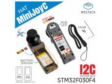 M5StickCシリーズと一体化できるジョイスティックコントローラHatモジュールです。各方向に最大23°倒せるジョイスティック(センタープッシュスイッチ付)、SK6812によるフルカラーLED、200 mAhのLiPoバッテリーを備え、自作ドローンの遠隔操作やロボットジョイント部の制御にも使えます。
