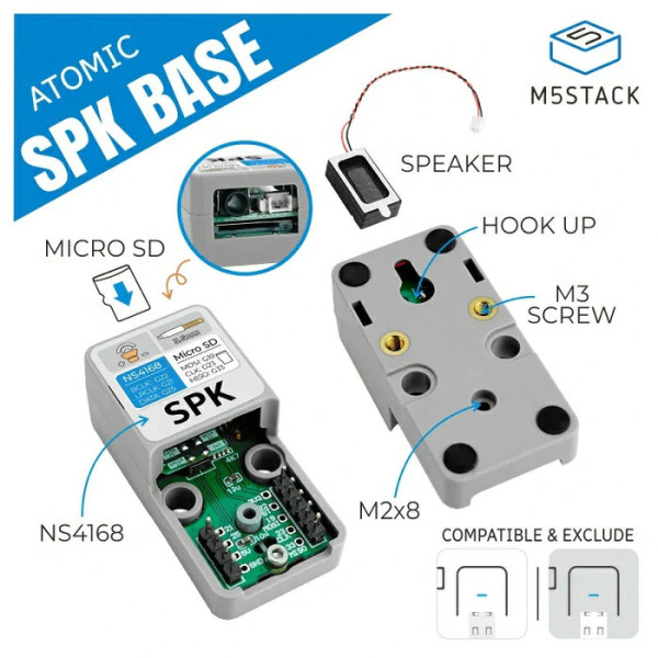 本製品はATOM NS4168搭載 スピーカーキットから、スピーカーベースと1 Wスピーカー(形が丸型から角形に変更)のみを取り出した製品です。ATOM本体は含まれません