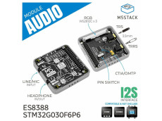 ES8388オーディオコーデックが搭載されたM5stack用オーディオインタラクション拡張モジュールです。マイク入力専用TRSジャックとマイク入力/ヘッドフォン出力兼用TRRSジャックの二つの3.5 mmジャックにより、様々な録音とステレオ再生に対応します。