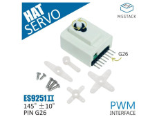 M5StickCに接続できるサーボモーターHatモジュールです。M5StickCに直接サーボモーターを接続できます。ES9251IIデジタルサーボを搭載し、G26ピンを通じてPWM信号で制御できます。