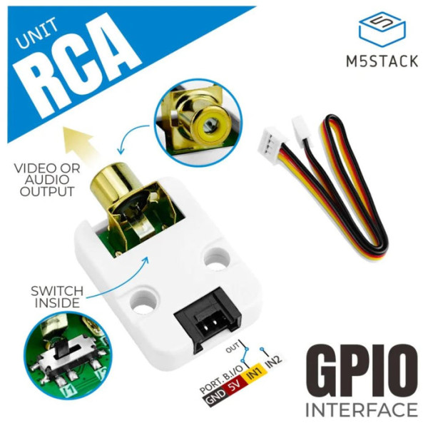 販売元商品ページ: <a href="https://shop.m5stack.com/products/rca-audio-video-composite-unit?variant=43636629963009" rel="“noopener”" target="“_blank”">RCA Audio/Video Composite Unit</a>