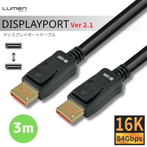 16K対応 Ver.2.1 DisplayPortケーブル 3m