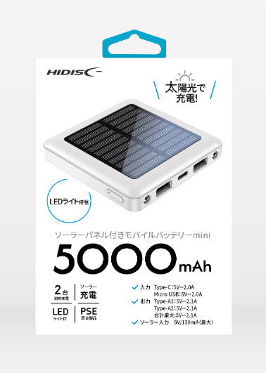 【大阪店のみ取扱品】ソーラーパネル付きモバイルバッテリーmini