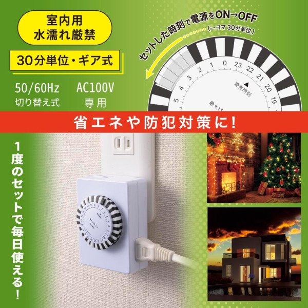 24時間タイマースイッチ(30分単位ギア式/AC100V専用/室内用)
