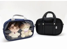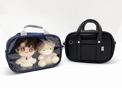 スクールバッグ風デザインの、ぬいぐるみが入るポーチです。