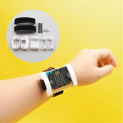 micro:bit と電池ボックスをまとめるケースです。付属のバンドやクリップを使って、カラダに micro:bit を装着できます。micro:bit CreateAIを使ったAIプロジェクトにピッタリな商品です。