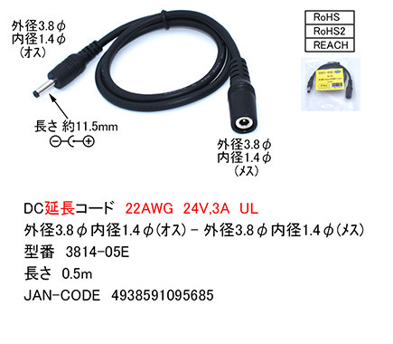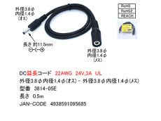 【取寄品】DCコード 延長用(外径3.8mm内径1.4mm) 0.5m