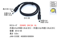 【取寄品】DCコード 両端プラグ付(外径3.5mm内径1.35mm) 0.5m