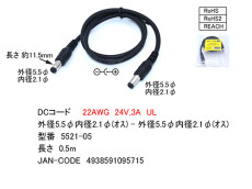 【取寄品】DCコード 両端プラグ付(外径5.5mm内径2.1mm) 0.5m