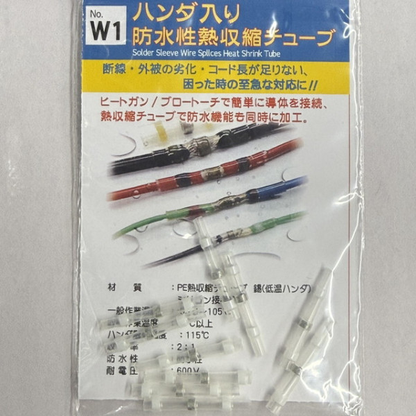 収縮チューブ内に低温はんだ/シリコン接着剤を内蔵しています。