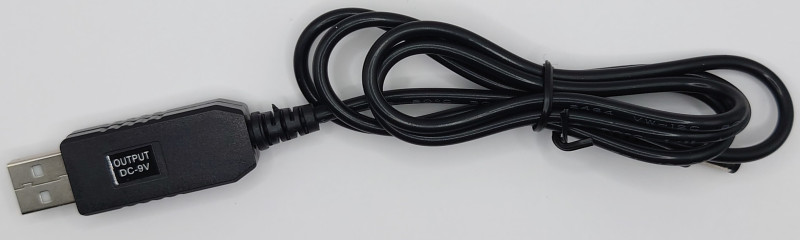 QCやPDではない、通常のUSB5V給電から9Vを作り出す昇圧ケーブルです。昇圧回路を使うため電流値の多い用途には向かず、上限は1A程度となります。