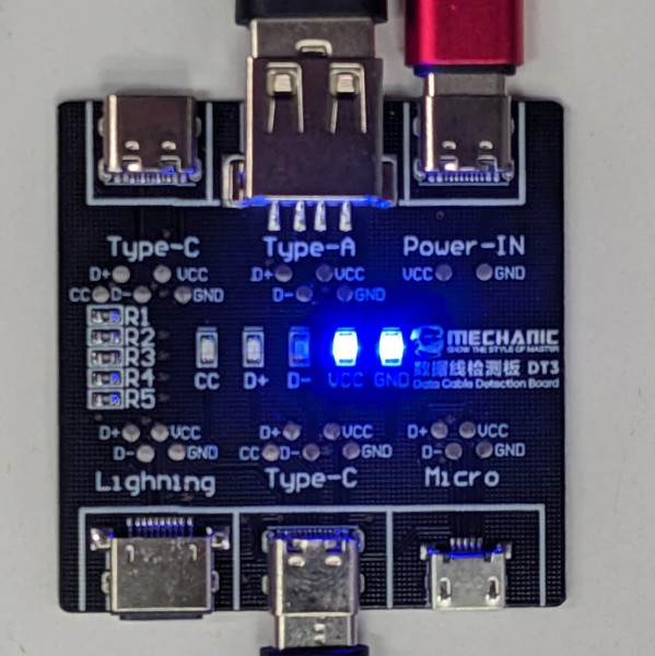 各種USB2.0ケーブルの断線有無およびデータ線結線だけが確認できるという、簡易なケーブルチェッカーです。給電用のUSB(A)~Type-Cケーブルが別途必要となります。