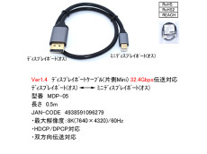 【取寄せ品】DisplayPortケーブル(片側Mini)Ver1.4 最大8K60Hz 約0.5m