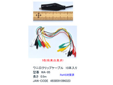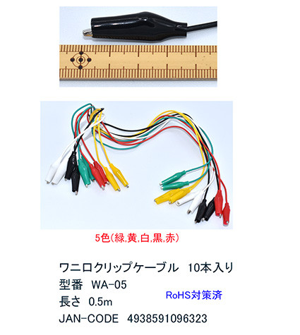ワニ口クリップケーブル 10本入り 各色0.5m(白・黒・緑・赤・黄)