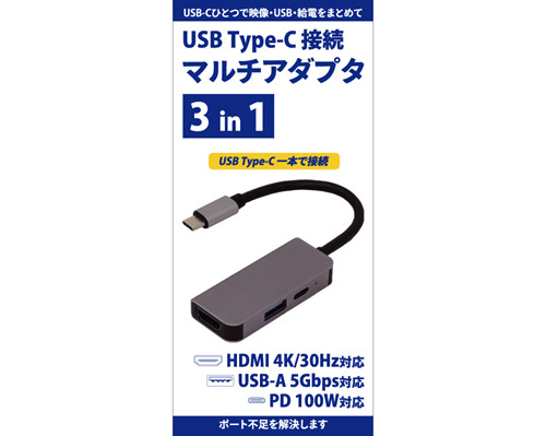 USB Type-C接続 マルチアダプタ 3in1