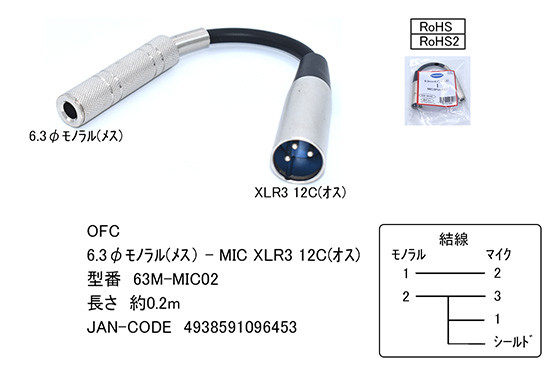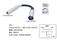 【取寄せ品】6.3φモノラル(メス)-MIC XLR3 12C(オス)約0.2m