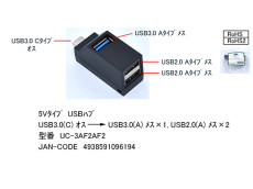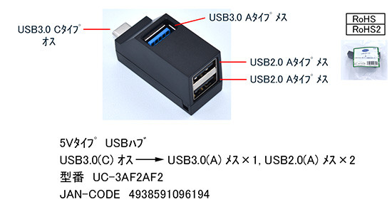 USBハブ USB3.0(C)オス→USB3.0(A)メス×1/USB2.0(A)メス×2 データ通信・給電対応