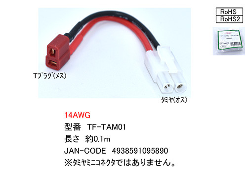 T型コネクタ(メス)-タミヤコネクタ(オス)ケーブル 約0.1m