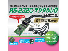 REX-PE64Dは、1本のPCI Expressスロットに、RS-232C×4ポートと6bitデジタルI/O×1ポートを増設可能な、マルチファンクションボードです。