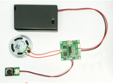 MK-142F MP3再生可能!組込み用薄型USBプレーヤーボード完成品(8メガメモリ内蔵)は、オリジナルの音声メッセージカードはもちろん、製品の音声説明装置や音楽の再生装置を簡単に作れる再生ボード(スピーカー、電池ボックス、再生用ボタン付き基板。組み立て済み。ハンダ付け必要なし)です。MP3形式のファイルをデコードし、付属のスピーカー(36mm径。モノラル)から比較的大きな音量(約0.5W。音源に依存)で再生します。MP3形式のファイルは内蔵メモリ(フラッシュメモリ)にUSBインターフェイスを通してPCからドラッグ&ドロップすることで簡単に記録できます。電池を入れて再生スイッチを押すだけの簡単操作です。