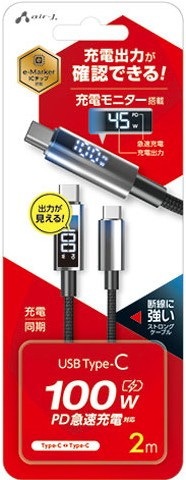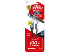 PD100W対応 充電モニター搭載 USB Type-C ケーブル 2m