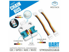 多くのChainデバイスをシリアル通信でデイジーチェーン接続できるM5Stack Chainシリーズ製品のひとつで、M5Stack Chainシリーズと既存の各種ユニットの間を繋ぐ通信プロトコル変換ユニットです。各種ユニットに直結でき、Chain側は二つのHY2.0-4P 拡張インタフェースを備えているので簡単にデイジーチェーン接続できます。