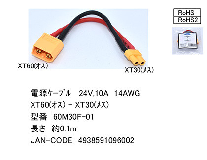 XT60(オス)-XT30(メス) 電源ケーブル 約0.1m