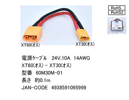 XT60(オス)-XT30(オス) 電源ケーブル 約0.1m
