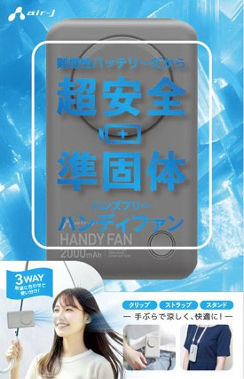 準固体電池 安心ハンディファン(グレー)