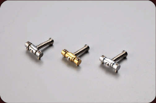 V字溝構造で弦との接触面積を最大化したTL用サドル。オフセット構造によりサドルの質量を確保しています。弦の安定性を高め、反転することで左右どちらのモデルにも対応。1/16インチ六角レンチで弦高調整が可能です。